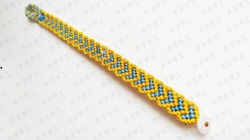 5. 固定尾端:在完成编织后,用胶水将尾端固定,确保手链不会脱落。